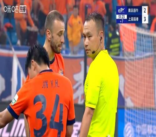 第27轮的中超第一场比赛就出现争议判罚!这不是点球?上海海港逃过一劫又获利——一次疑似的点球被吹掉,青岛海牛错失再度领先良机。对于主裁判这个判罚,直播解说员有异议!