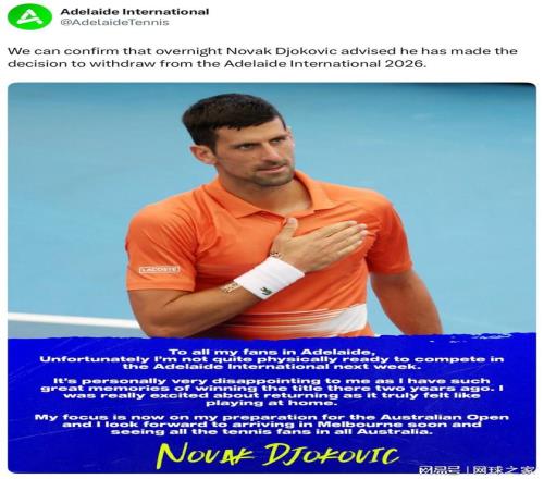 北京时间1月6日,网坛巨星德约科维奇通过社交媒体发表声明,正式宣布退出即将于下周开赛的2026年阿德莱德国际赛。这位24个大满贯冠军得主的决定,在网球界引发广泛关注与深思。