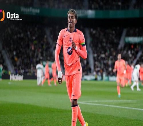 在与埃尔切的西甲第22轮比赛中打入一球后,18岁的亚马尔西甲生涯已打入23球,追平了姆巴佩保持的本世纪19岁前五大联赛进球最多纪录。此役对阵埃尔切打入一球后,18岁的巴萨前锋亚